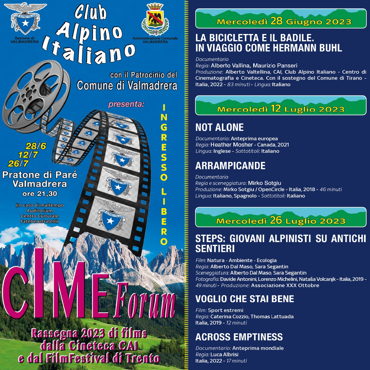Dopo il grande successo della prima edizione dello scorso anno, la Sezione CAI di Valmadrera ha deciso di riproporre anche per l'estate del 2023 la rassegna cinematografica CIMEForum con film […]