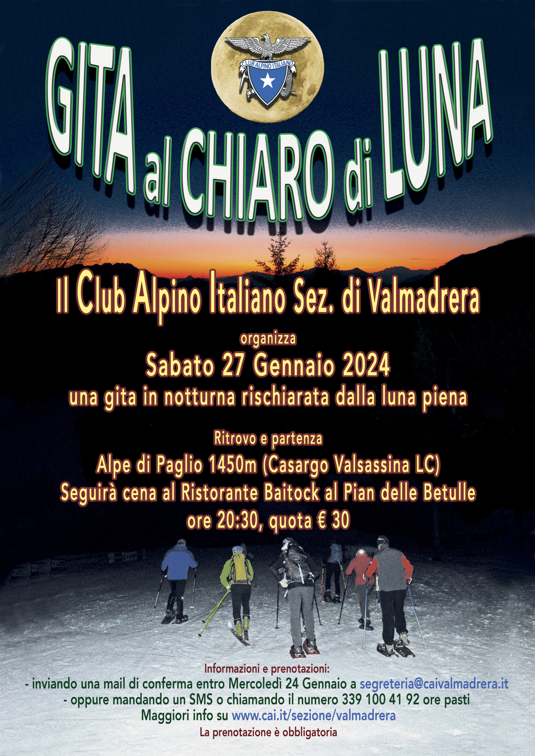 La Sezione del CAI di Valmadrera organizza per Sabato 27 Gennaio una gita in notturna, rischiarata dalla luna piena, con ritrovo e partenza dall’Alpe di Paglio 1450m (Casargo, LC). L’orario di partenza per chi sale al Cimone è scaglionato […]