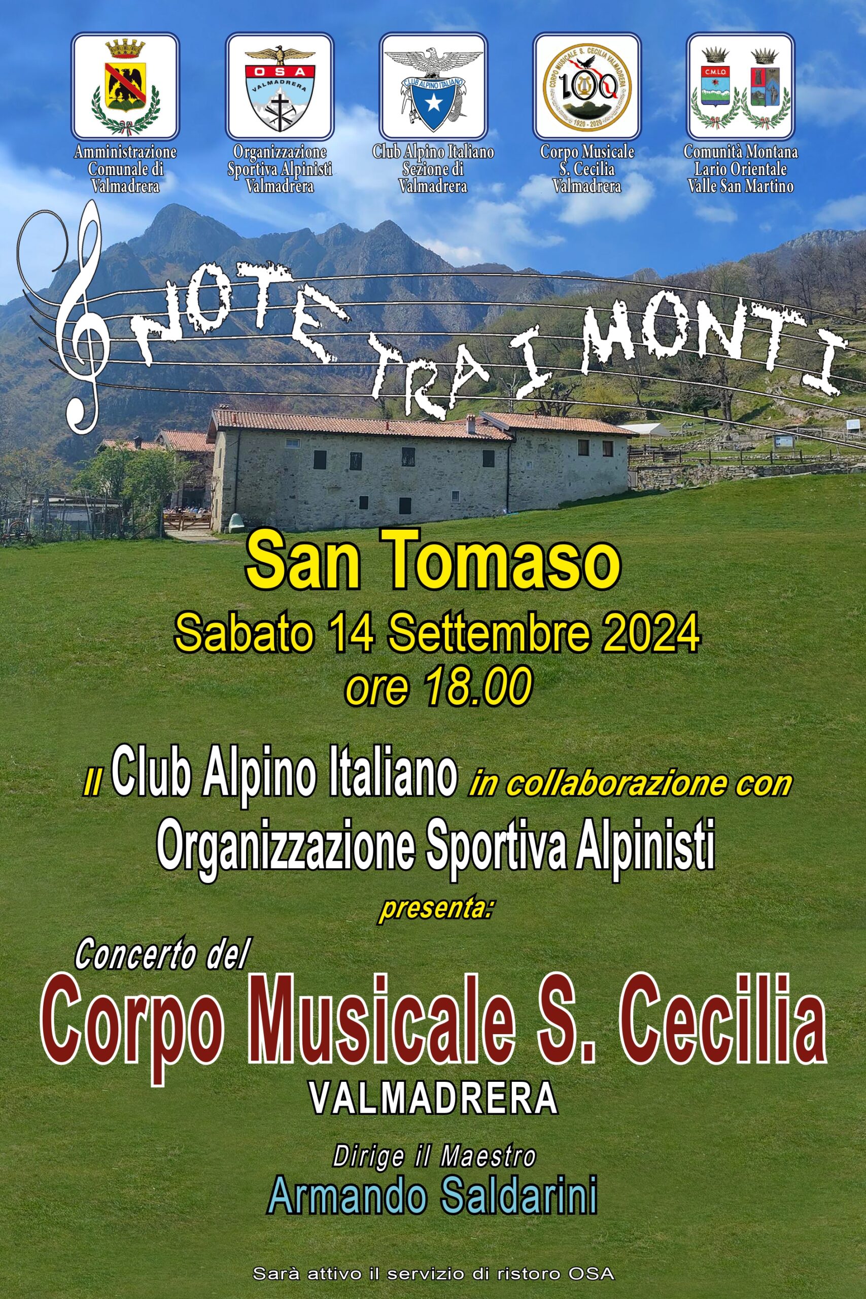 Come ormai da tradizione la nostra Sezione, in collaborazione con l’OSA Valmadrera, propone il concerto del Corpo Musicale Santa Cecilia di Valmadrera presso il suggestivo scenario del borgo di San Tomaso. L’appuntamento è per Sabato 14 settembre 2024 ore 18:00. In occasione di tale evento sarà aperto il ristoro OSA di cui se ne potrà […]